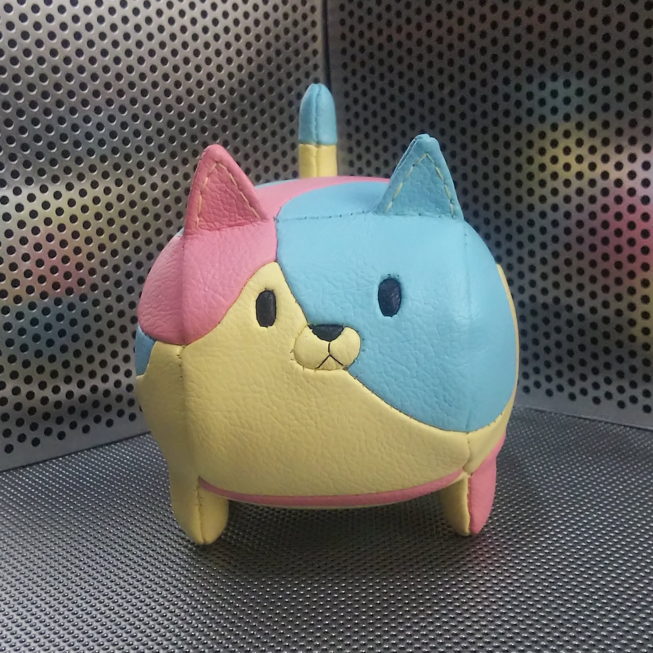 この作品は国内大手メーカーさまのビニールレザーを許可を得て使用していますが、この素材はプラスチックと接していると少しプラスチックを溶かす場合があるため置き場等にご注意ください。